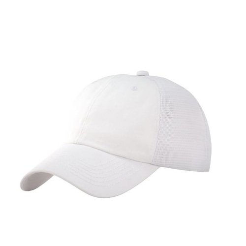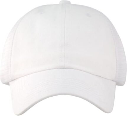 Plain white baseball cap with adjustable strap. Suitable for casual and outdoor use.